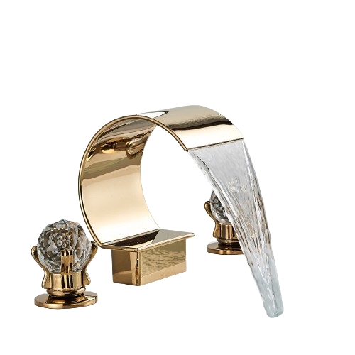 3 Loch Waschtischarmatur Waschbecken Mischbatterie mit 2 Griff Wasserhahn Bad Gold Wannenrandarmatur