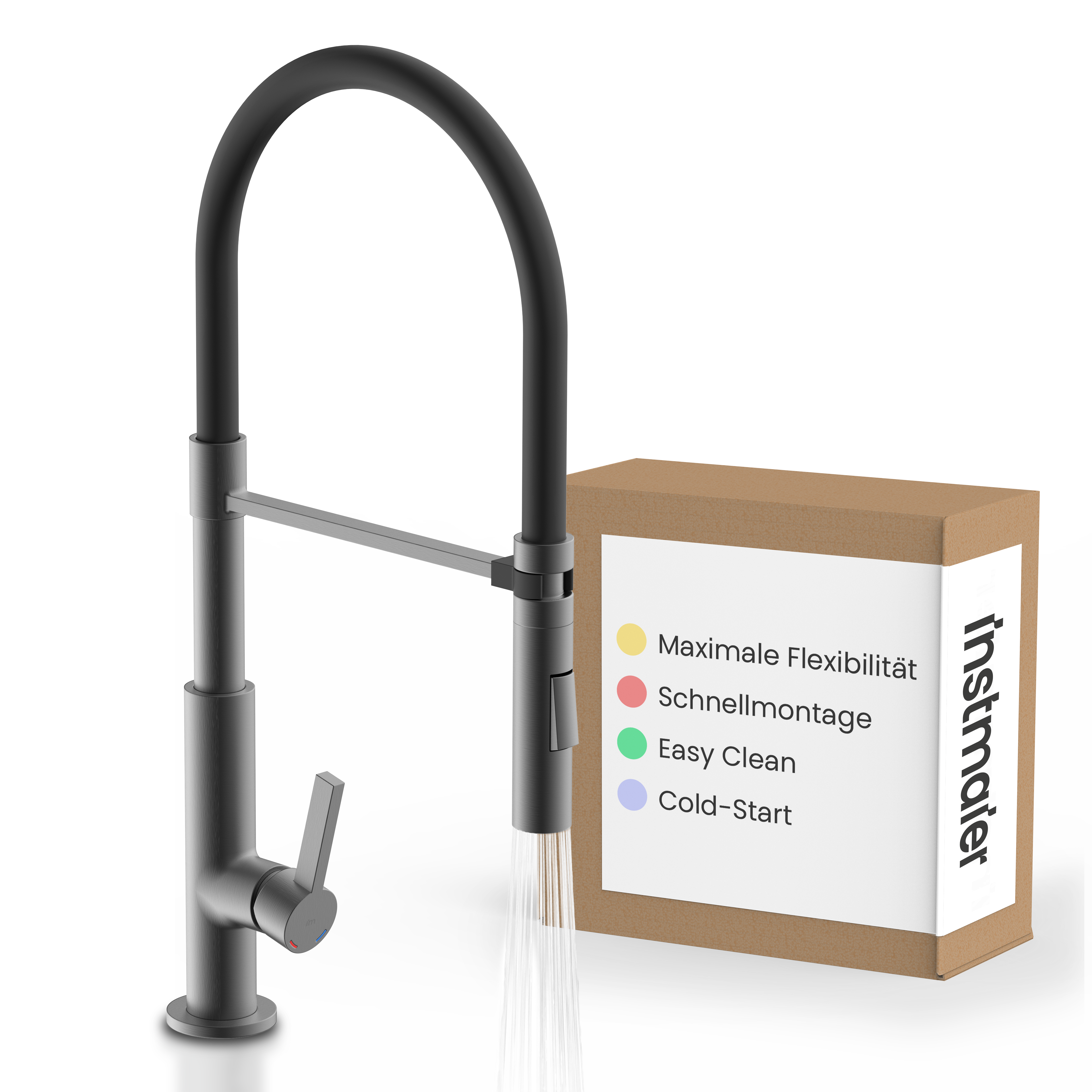Küchenarmatur, mit flexibler Geschirrbrause, Graphit matt, Wasserhahn Küche, Spültischarmatur mit Hochdruck - instmaier