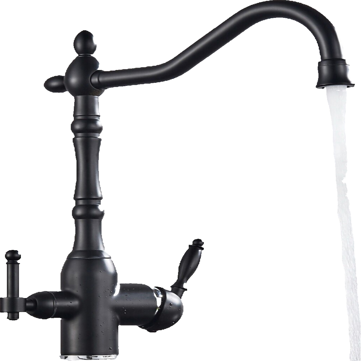 KLARWERK Julian | Retro 3-Wege Armatur Edelstahl Schwarz matt | Vintage Filter Wasserhahn Küche | 360° Osmose Mischbatterie U-Auslauf 3 Anschlüsse