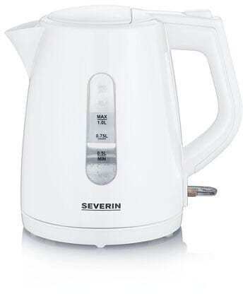 Severin WK 3411 Wasserkocher, 2200W, 1l, 360° central-cordless-system, Überhitzungsschutz, Dampfstopp-Automatik, weiß