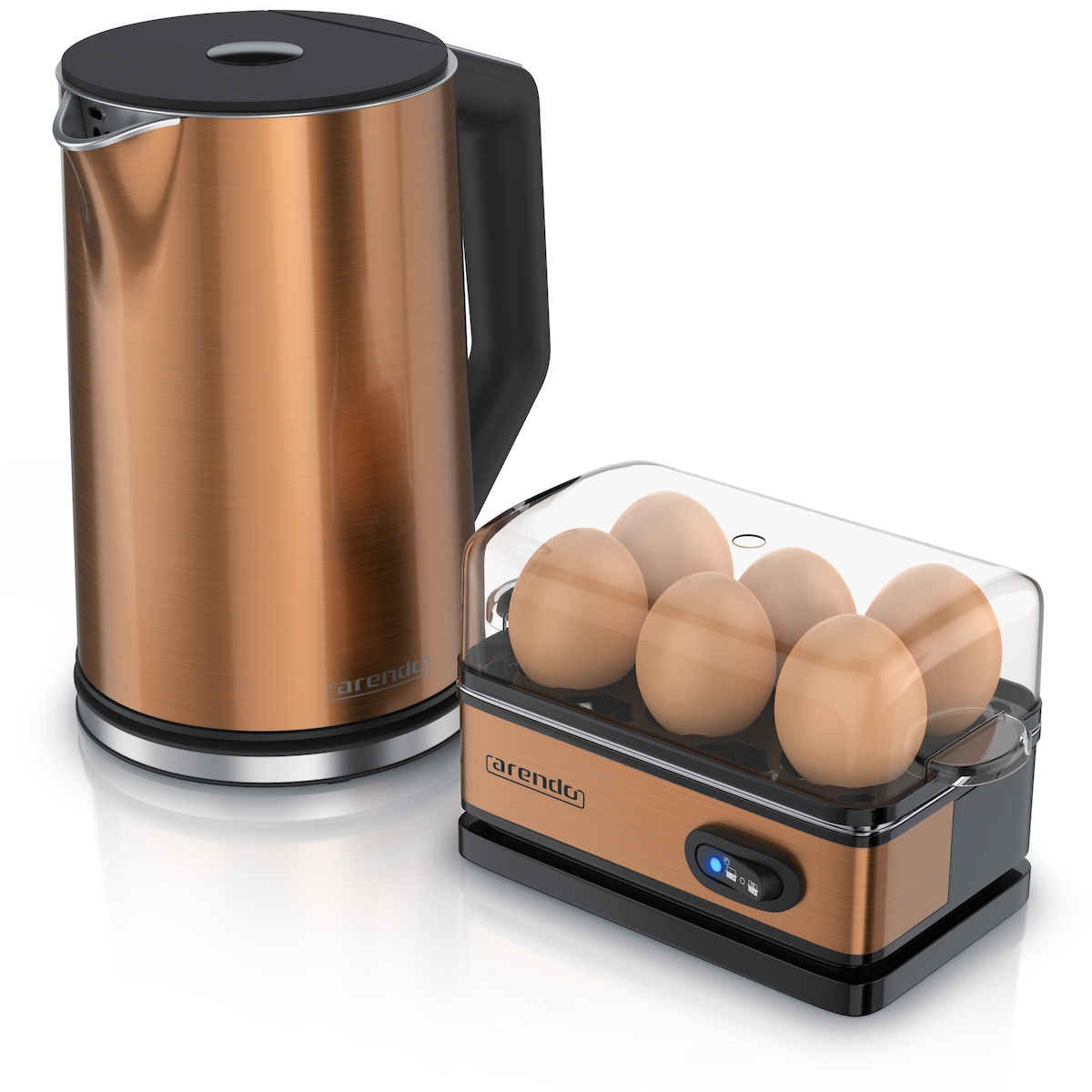 Arendo 2-teiliges Frühstücksset, 1,5 Liter Wasserkocher, 6er Eierkocher, Kupfer