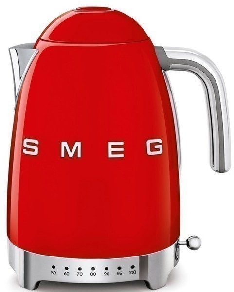 SMEG Wasserkocher mit Temperatureinstellung 50-100°C Edelstahl Kocher,2400,00 W, 360°Basis elektrischer Wasser Kocher mit Temperatureinstellung Rot