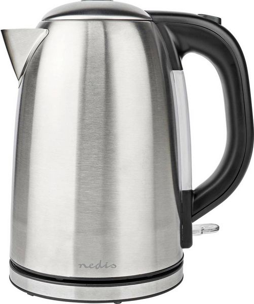 Nedis Wasserkocher - 1.7 l - Edelstahl - Schwarz / Silber - Um 360 Grad drehbar - Verdecktes Heizelement - Strix Controller - Boil-dry protection