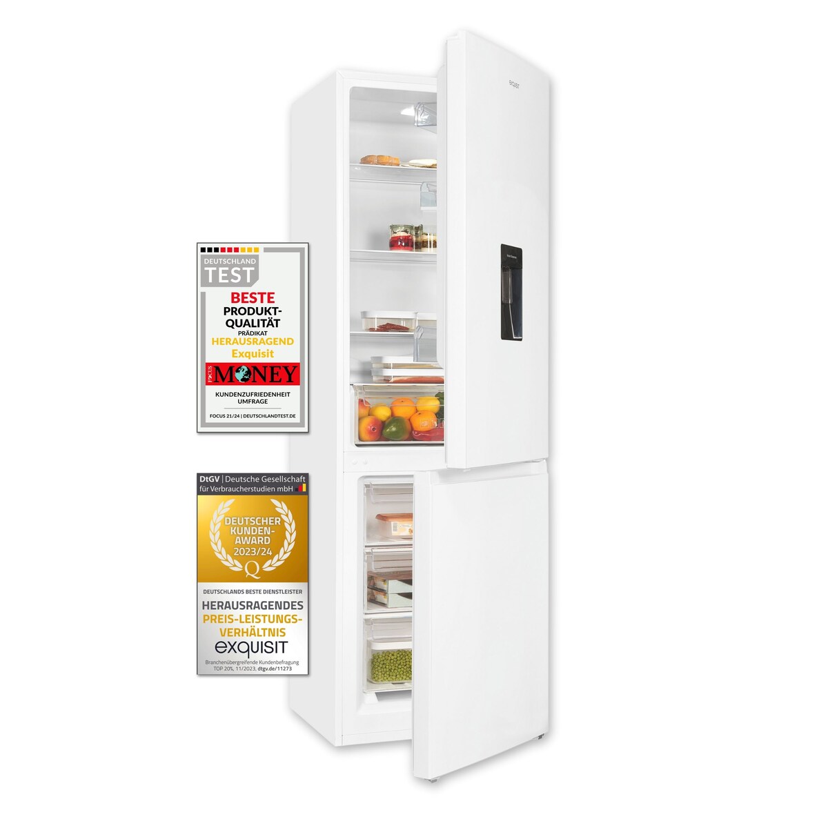 Exquisit Kühl-Gefrierkombination KGC320-95-E-WS-040C weiss | 315 l Nutzinhalt | Kühlgefrierkombination freistehend mit Wasserspender | 4* Gefrieren