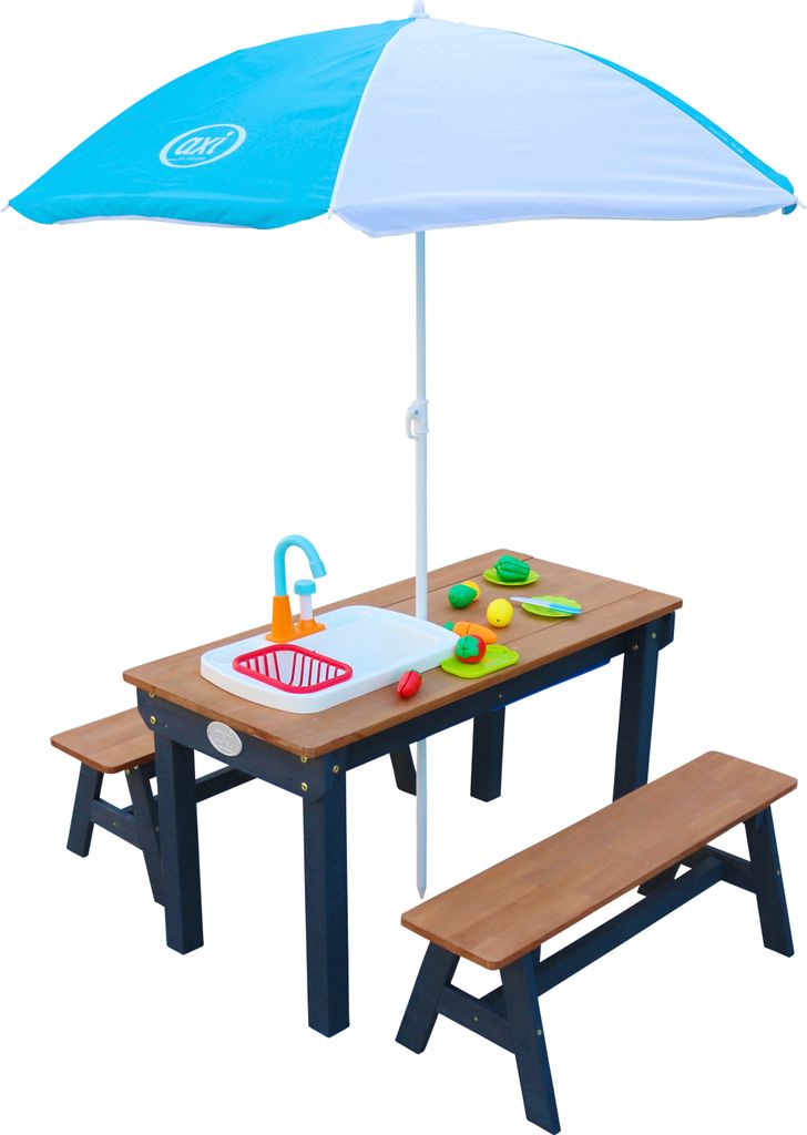 AXI Dennis Kinder Sand & Wasser Picknicktisch aus Holz | Wasserspieltisch & Sandtisch mit Bänken, Deckel, Behältern & Spüle | Kindertisch / Mats...