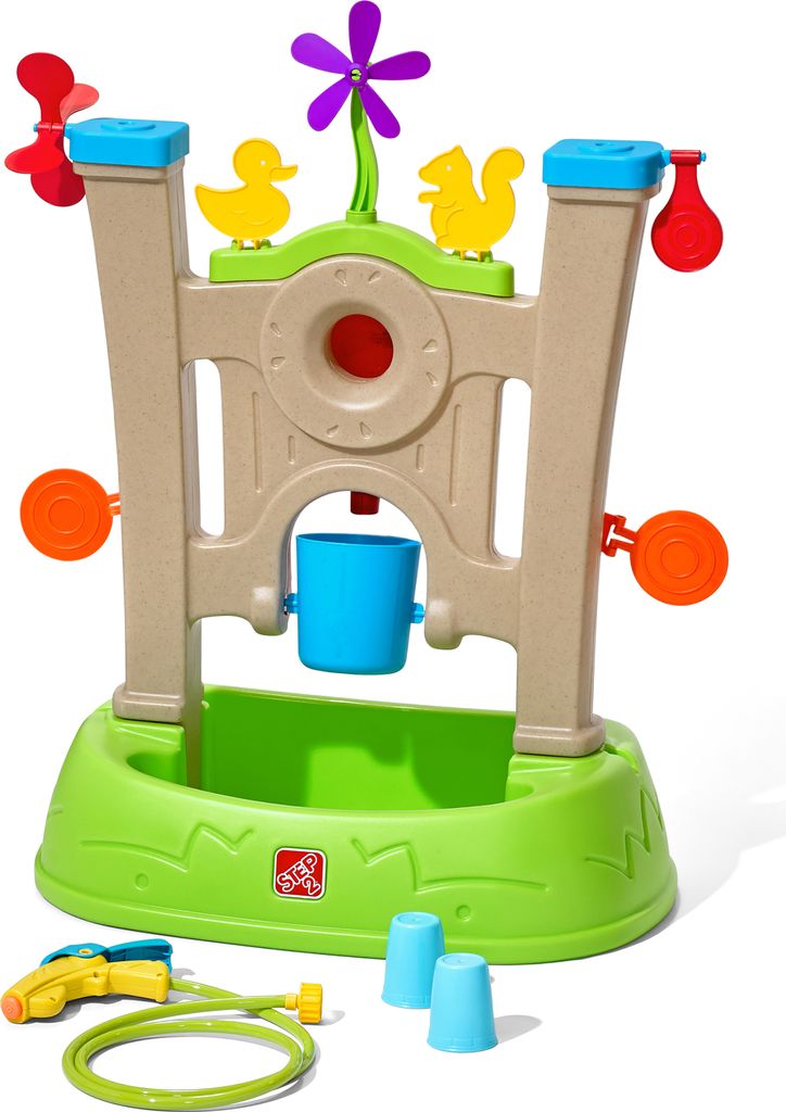Step2 Double Spin & Showers Wasserspieltisch mit 22-teiligem Zubehörset | Garten Wasser Spieltisch für Kinder | Großer Wassertisch für Kinder