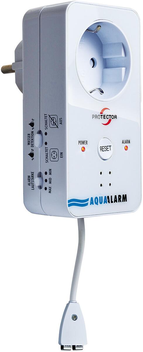 Protector WA-5.1 Wassermelder mit 2m Sensorkabel, mit Wasserstandsensor, Netzbetrieb mit Schaltfunktion, weiß (20590)