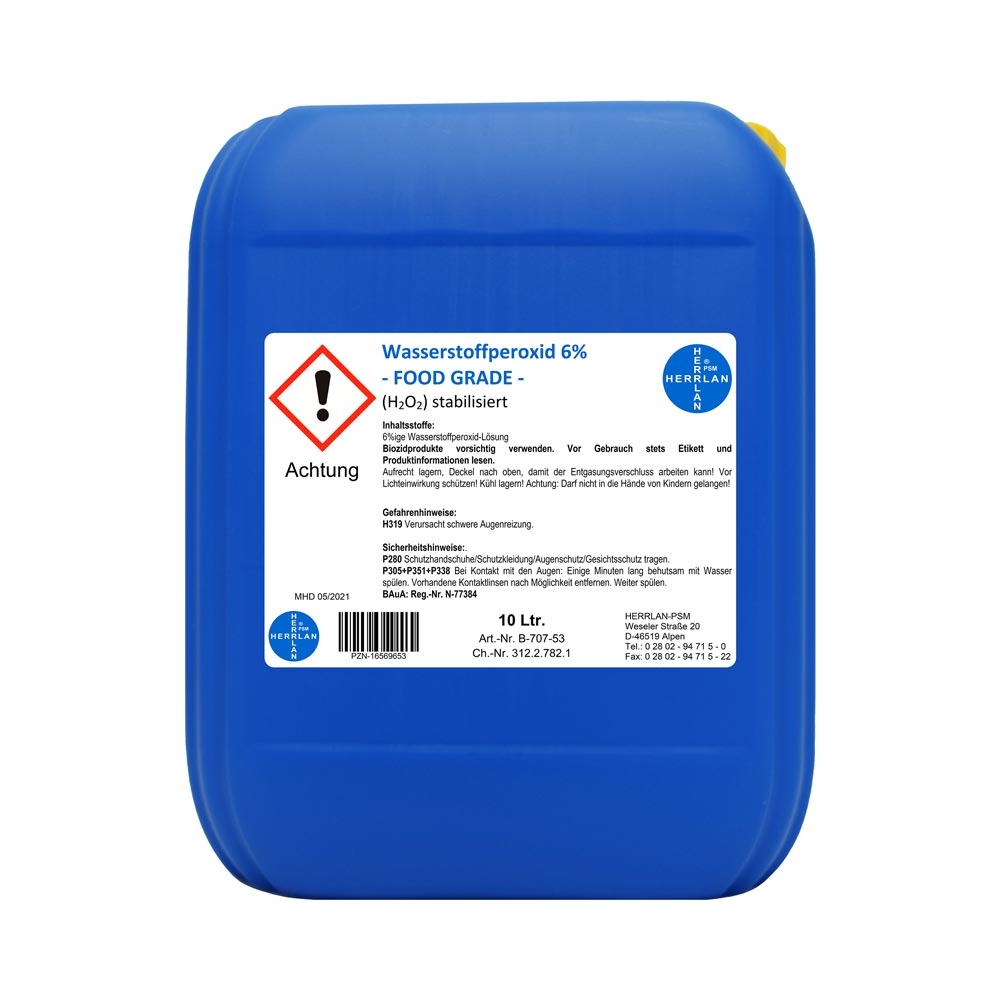 Herrlan Wasserstoffperoxid 6% FOOD GRADE I 10 Liter I stabilisiert I PZN-16569653 I Made in Germany