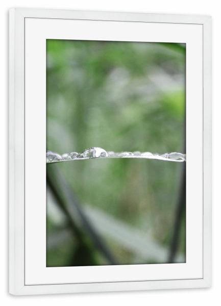 Poster mit Rahmen weiß "The waterdrop" artboxONE - Natur - Nature,Tropfen,Wasser,Water,Drop,Closeup,Nahaufnahme,Green,Grün