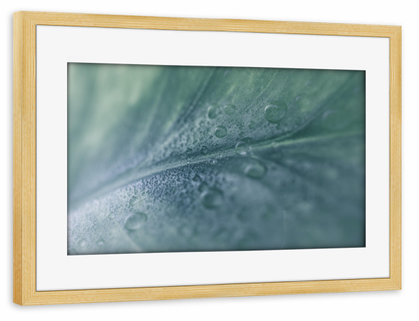 Poster mit Rahmen kiefer "The waterdrop" artboxONE - Natur - Nature,Tropfen,Wasser,Water,Drop,Closeup,Nahaufnahme,Green,Grün