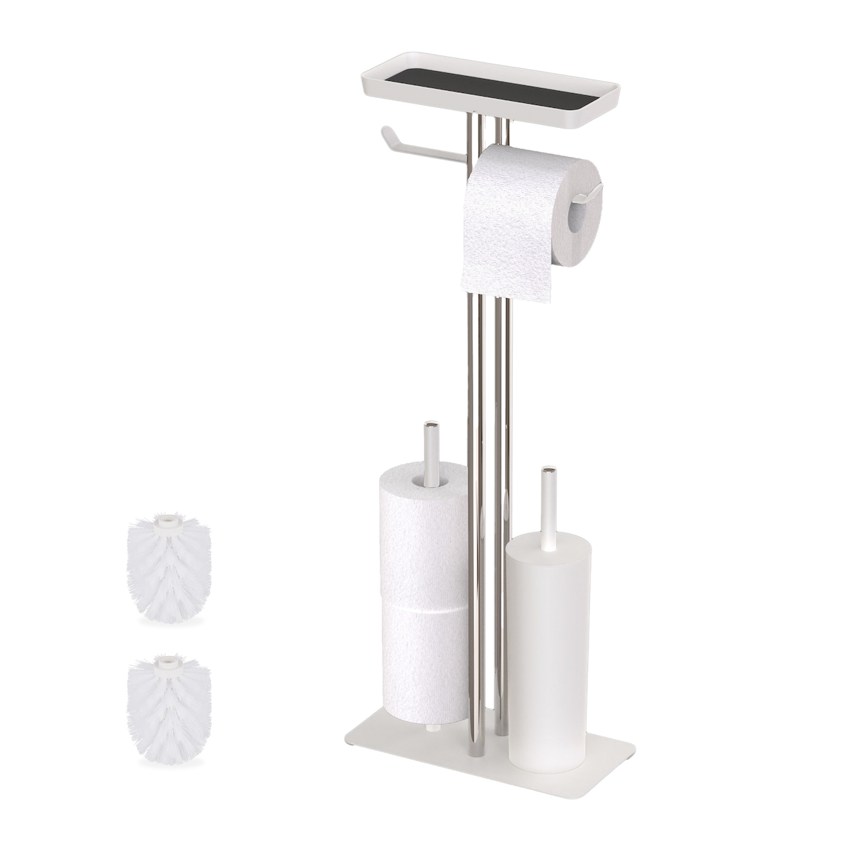 Relaxdays WC Garnitur, HBT: 65,5 x 29 x 11,5 cm, stehend, Klopapierhalter, Klobürste, Ersatzrollenhalter, Ablage, weiß
