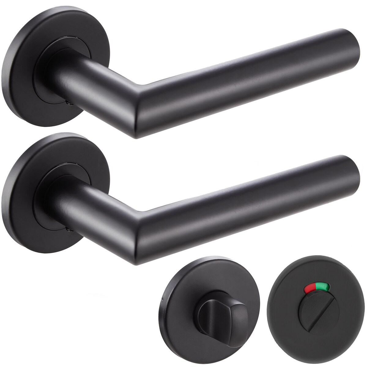 Domino Türgriff Drückergarnitur MIA-R WC - Badezimmer Set Rund-Rosette Türbeschlag für Badezimmertüren Set WC Rosetten-Garnitur Aluminium Schwarz