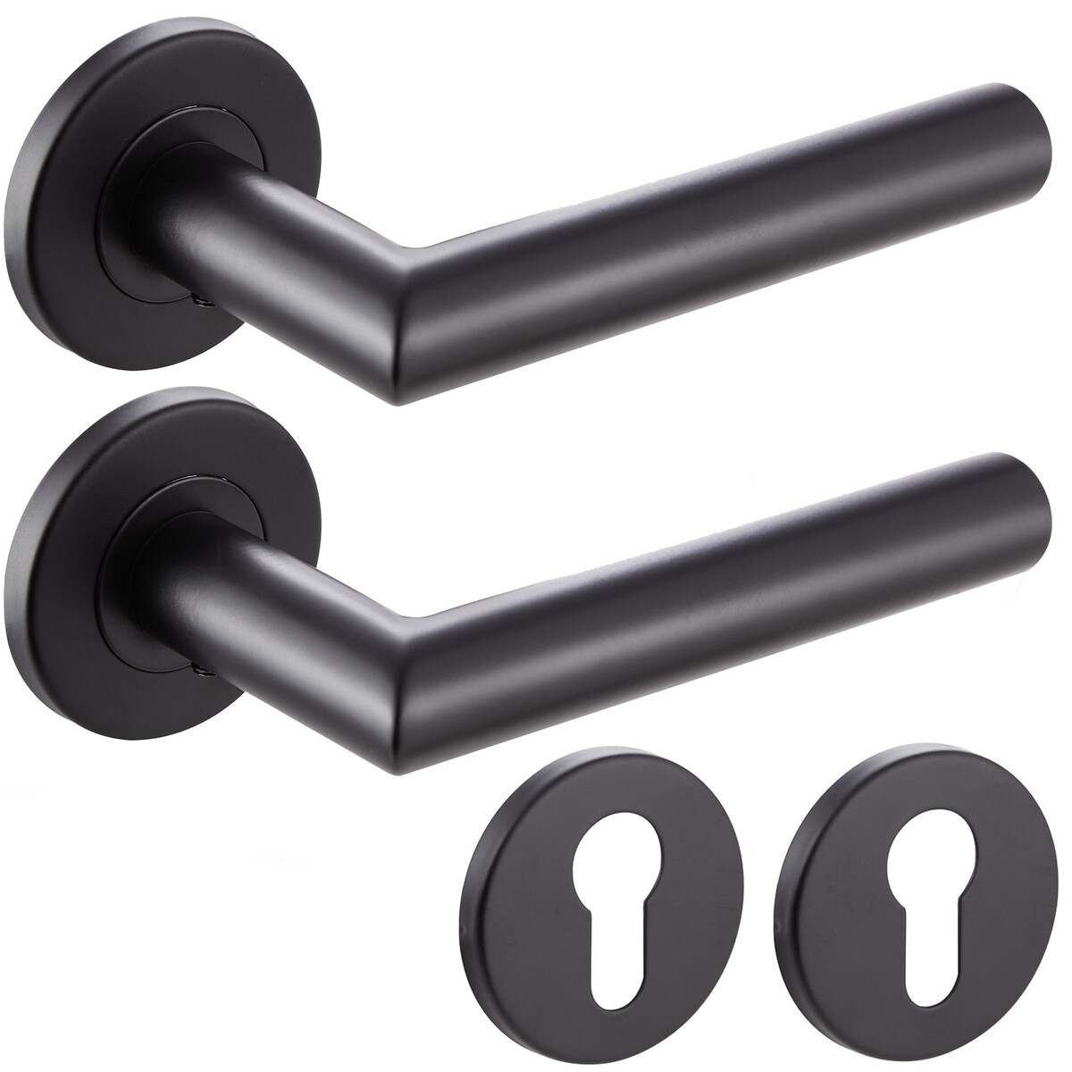 ID Dinkel Türgriff SCHWARZ Türgarnitur Türdrücker Türbeschlag Türklinke Innentür Bad WC EMILY PZ Garnitur-SET