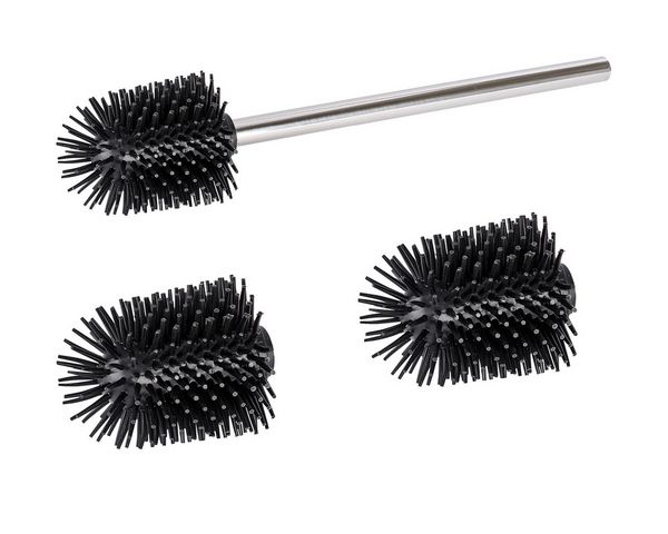 Ersatzbürsten Set für WC-Garnituren Silikon, Edelstahlstiel mit 3 Bürstenköpfen