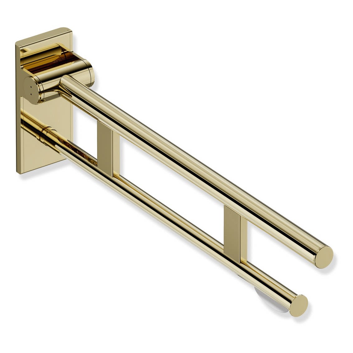 HEWI System 900 Stützklappgriff Duo Design A mit WC-Papierhalter, 70 cm, Accessoires, messing glänzend