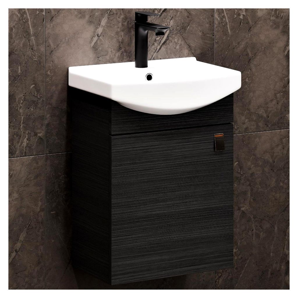 Badmöbel Set Waschtisch mit Unterschrank 45 x 60 x 33 cm und schwarzer Waschtischarmatur für Badezimmer und Gäste-WC, Anthrazit