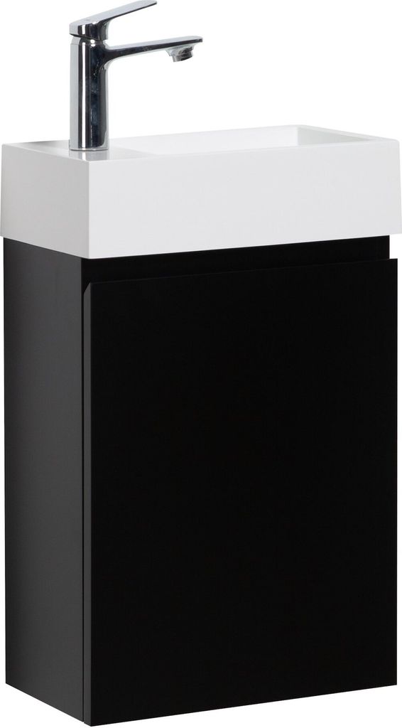 Badplaats Gäste-WC Waschtisch Set Angela 40 x 22 cm Schwarz Matt - Platzsparend Badmöbel Set mit Waschbecken und Unterschrank, Soft-Close