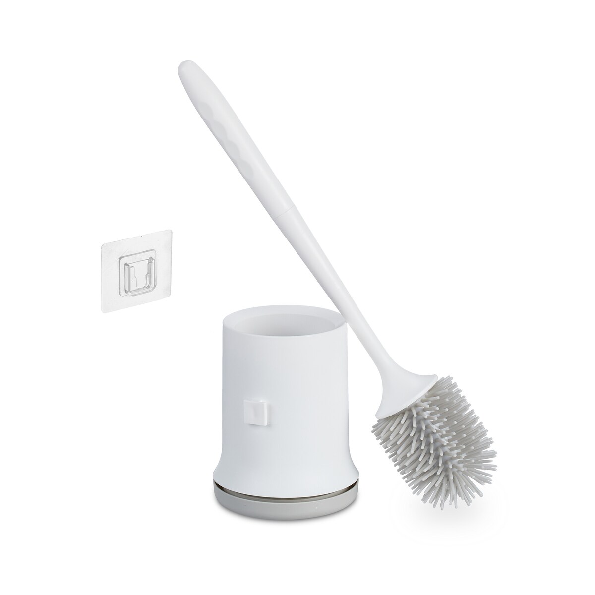 Relaxdays Toilettenbürste mit Wandhalterung, schnelltrocknend, WC-Bürste, Behälter, ohne Bohren, Kunststoff, weiß-grau