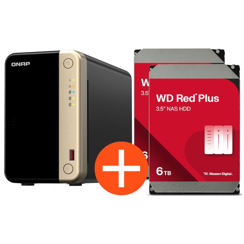 QNAP TS-264-8G NAS System 2-Bay 12TB inkl. 2x 6TB WD Red Plus WD60EFPX