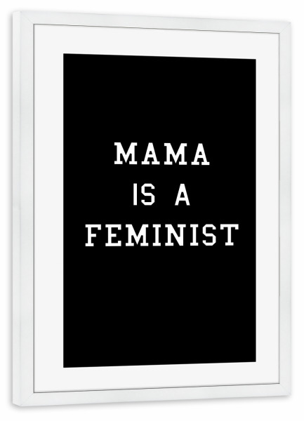 Poster mit Rahmen weiß "Mama is a Feminist" artboxONE - Typografie,Menschen,Schwarzweiß,Liebe