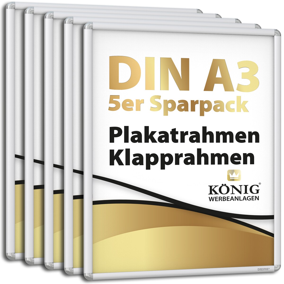 5 Plakatrahmen DIN A3 | abgerundete Ecken | 25mm Alu Profil, Silber | Bilderrahmen Klapprahmen Wechselrahmen Posterrahmen | 5er Sparpack | Dreifke