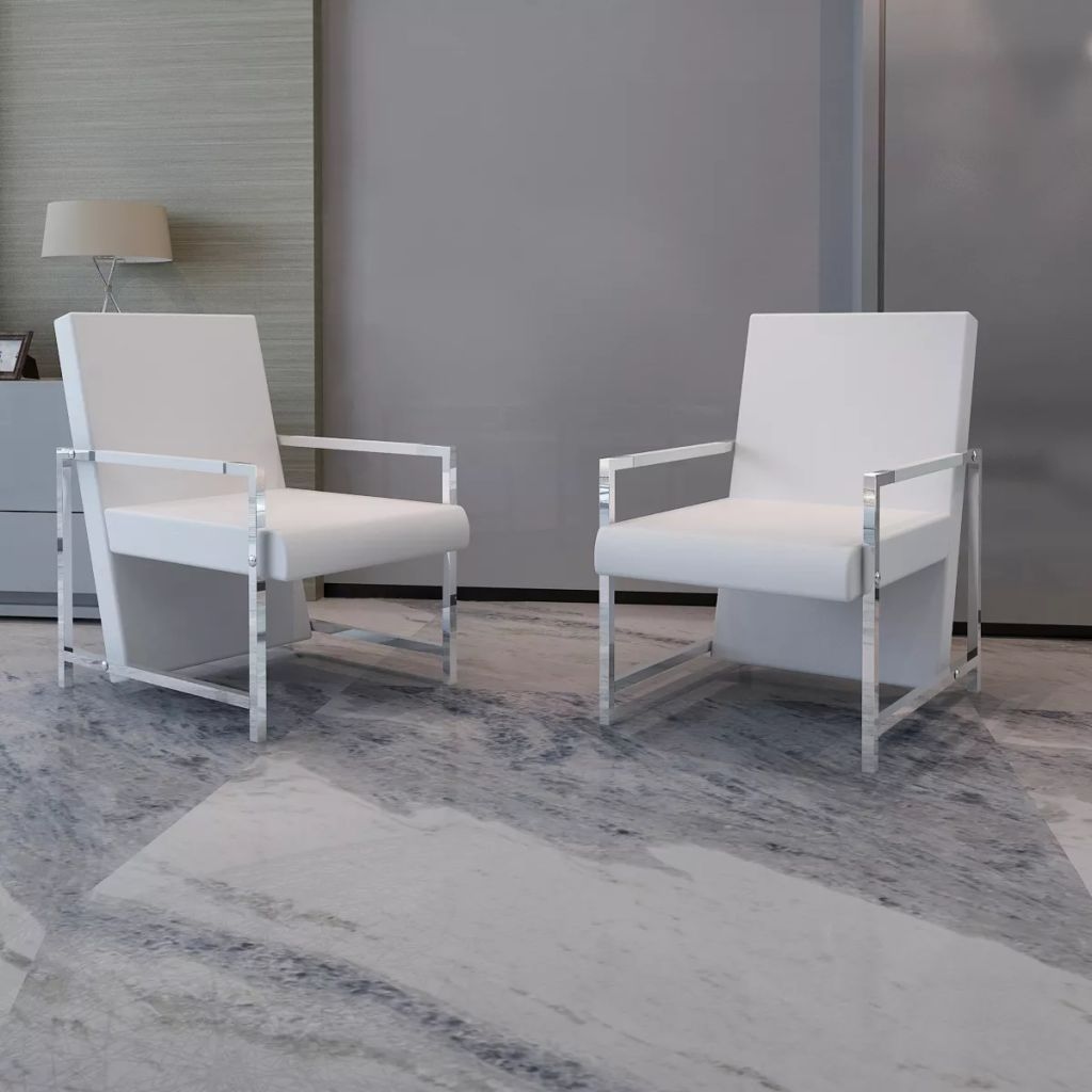 vidaXL Sessel 2 Stk. Verchromtes Gestell Weiß Kunstleder