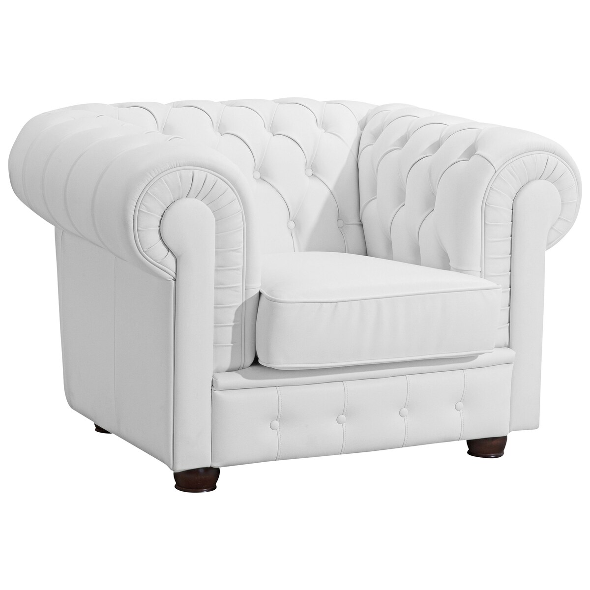 S-STYLE MÖBEL - Chesterfield Sessel aus Weiß veganem Leder mit Holzfüßen - Area - B94xT86xH72 cm