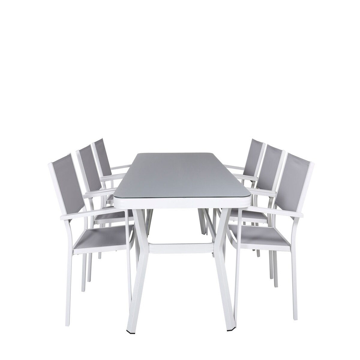 Virya Gartenset Tisch 100x200cm und 6 Stühle Copacabana schwarz, grau, weiß.