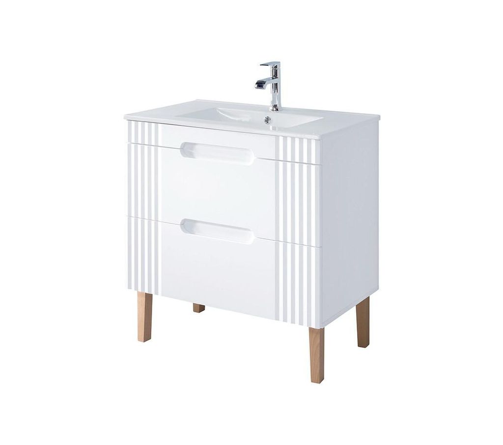 Möbelset 80 cm Unterschrank 2 Schubladen mit Waschbecken, Fiji White F BM202 - Weiß/ Evoke Eiche