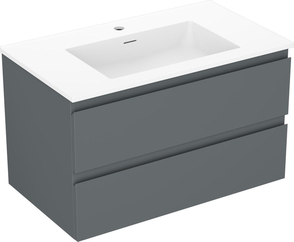 Mai & Mai Badmöbel-Set Waschtisch mit Unterschrank Mineralguss Waschbecken in Anthrazit Waschbeckenunterschrank 60x48x50cm Weiß Matt 2-Schubladen...