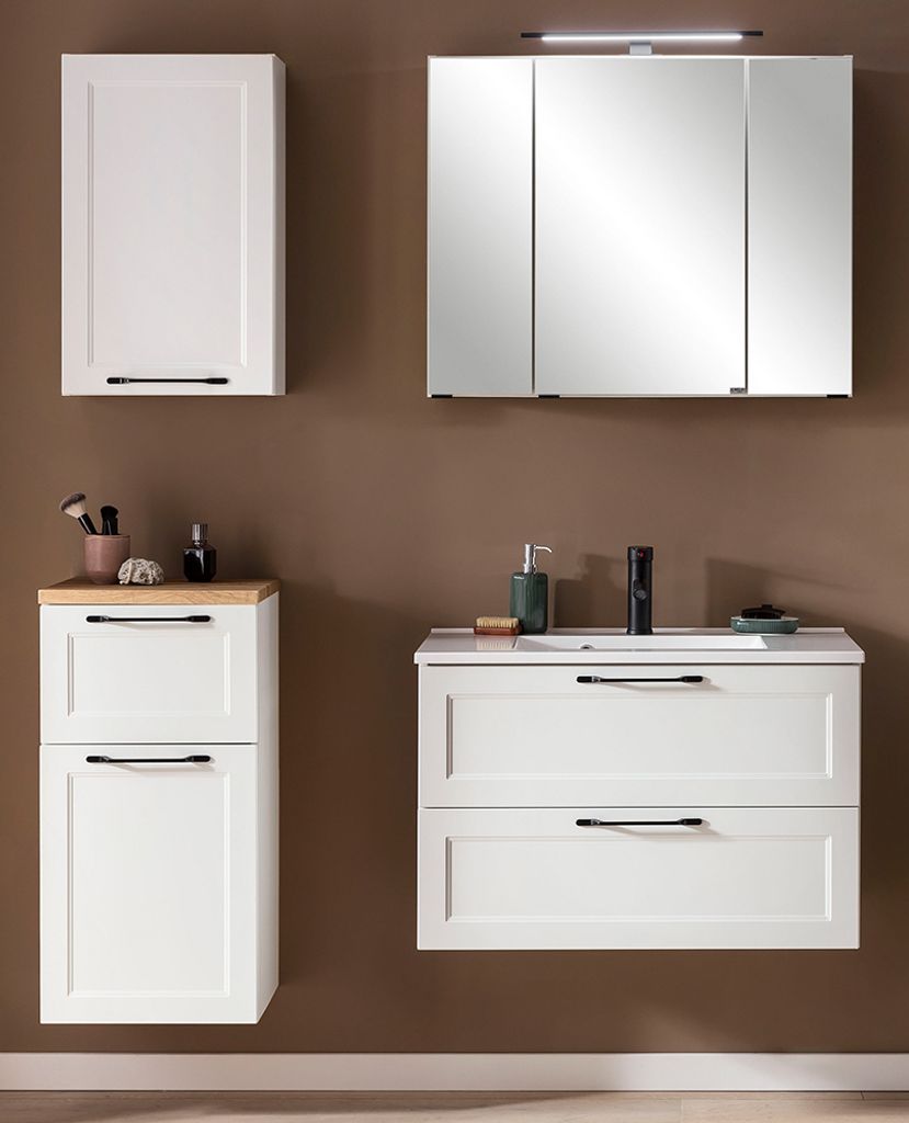 Badezimmermöbel Set im Landhaus Stil, weiß mit Waschbecken MARLING-03, B/H/T ca. 140/200/47 cm