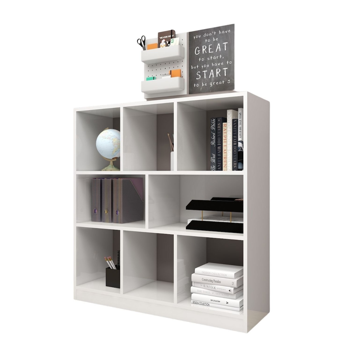Modernes Bücherregal - Industrieller Wandschrank - Bücherregal - Mehrere Ablagefächer - Schrank - Lagerschrank - Offen - Weiß
