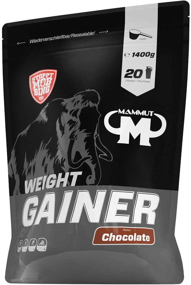 Mammut Nutrition - Weight Gainer 1400 g Beutel - 20 Portionen + GRATIS Protein Shaker, Geschmack: Schoko