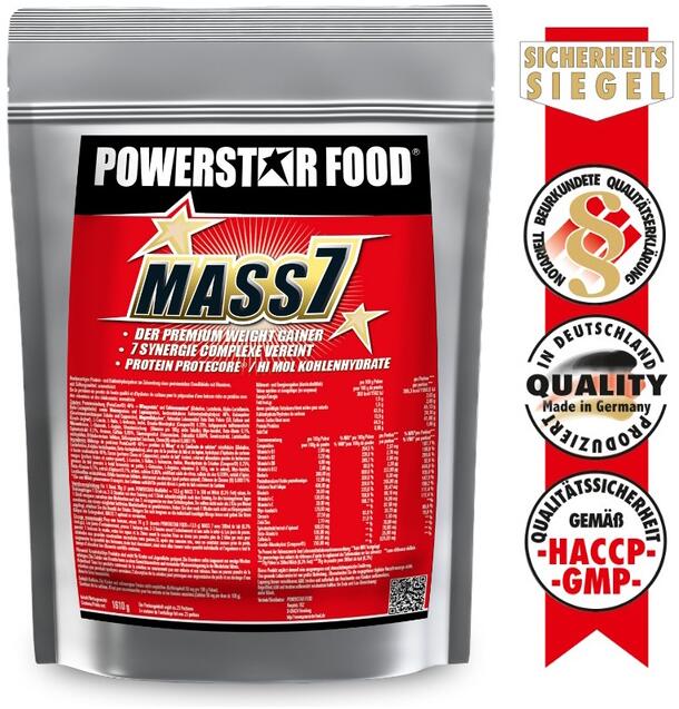 Powerstar Food MASS 7 Weight Gainer für Softgainer, 1610 g Beutel, Vanilla