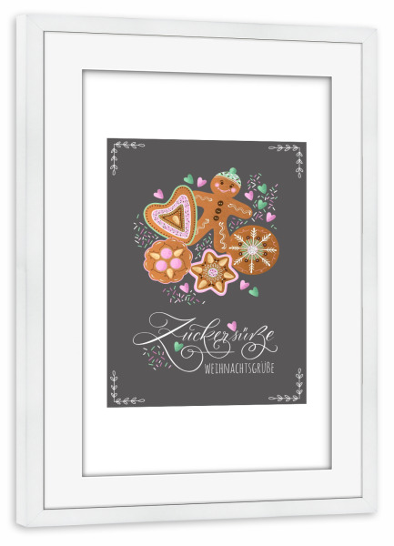 Poster mit Rahmen weiß "Lebkuchenmann" artboxONE - Weihnachten - Weihnachten,Sterne,Advent,Adventskalender,Geschenk,Lebkuchen,Kekse
