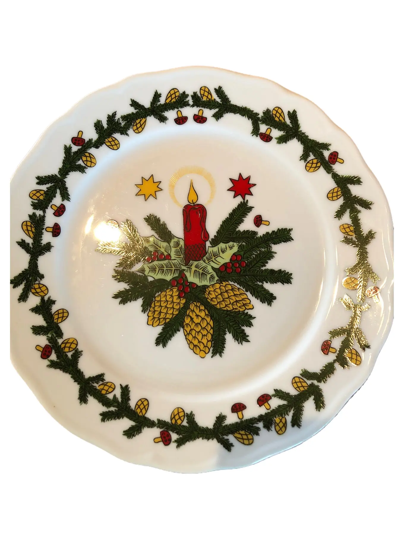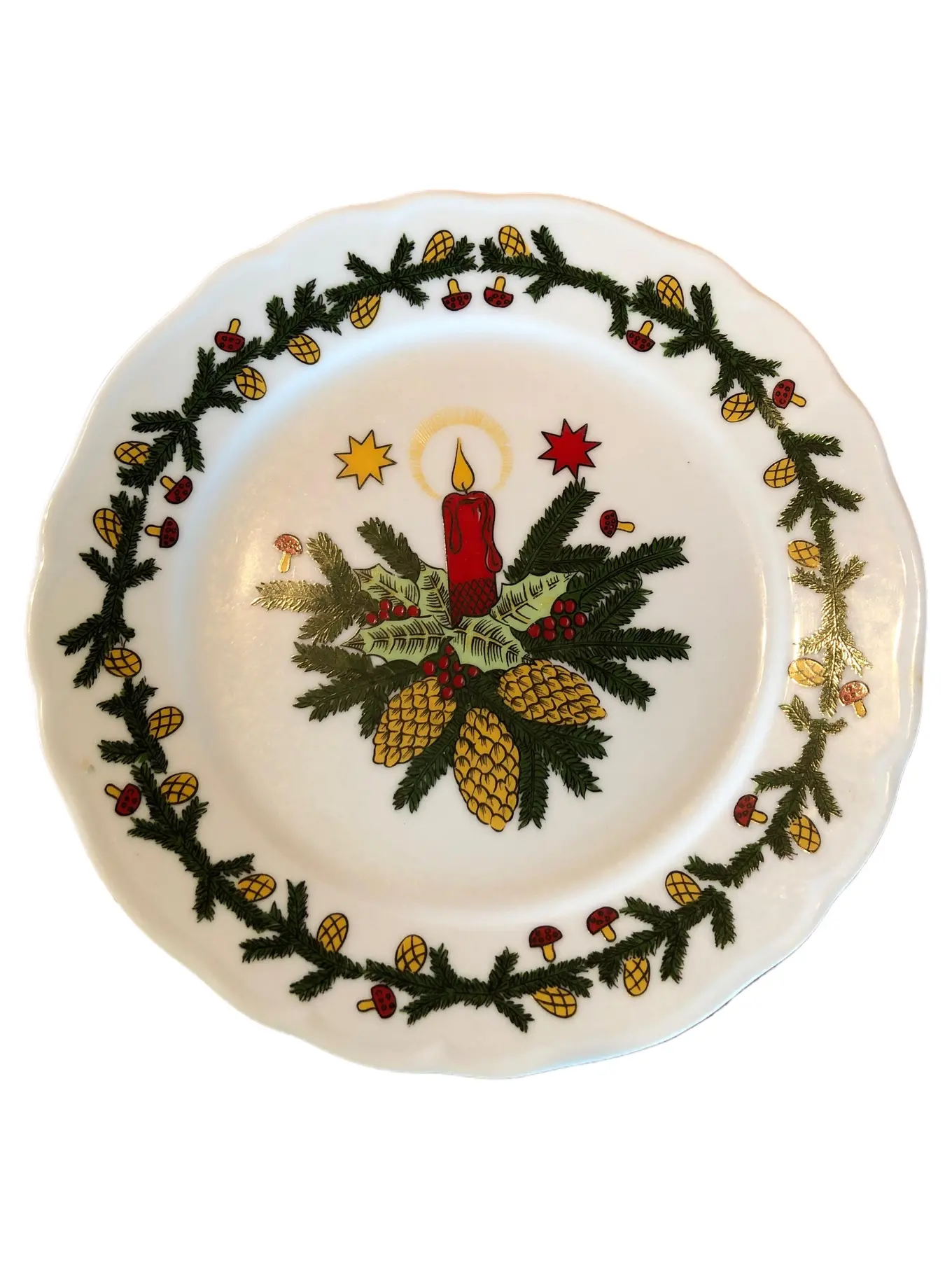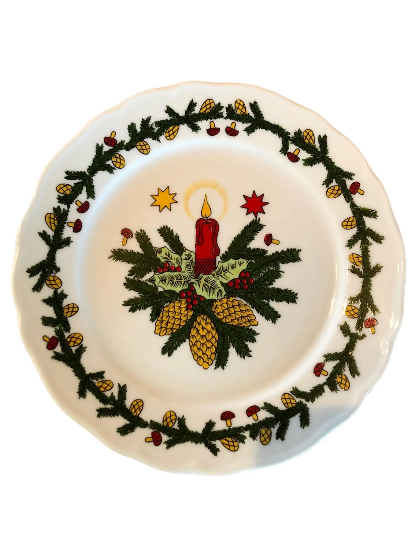 TIRSCHENREUTH Weihnachtsteller Porzellan Kerze Tannenzweige 19cm