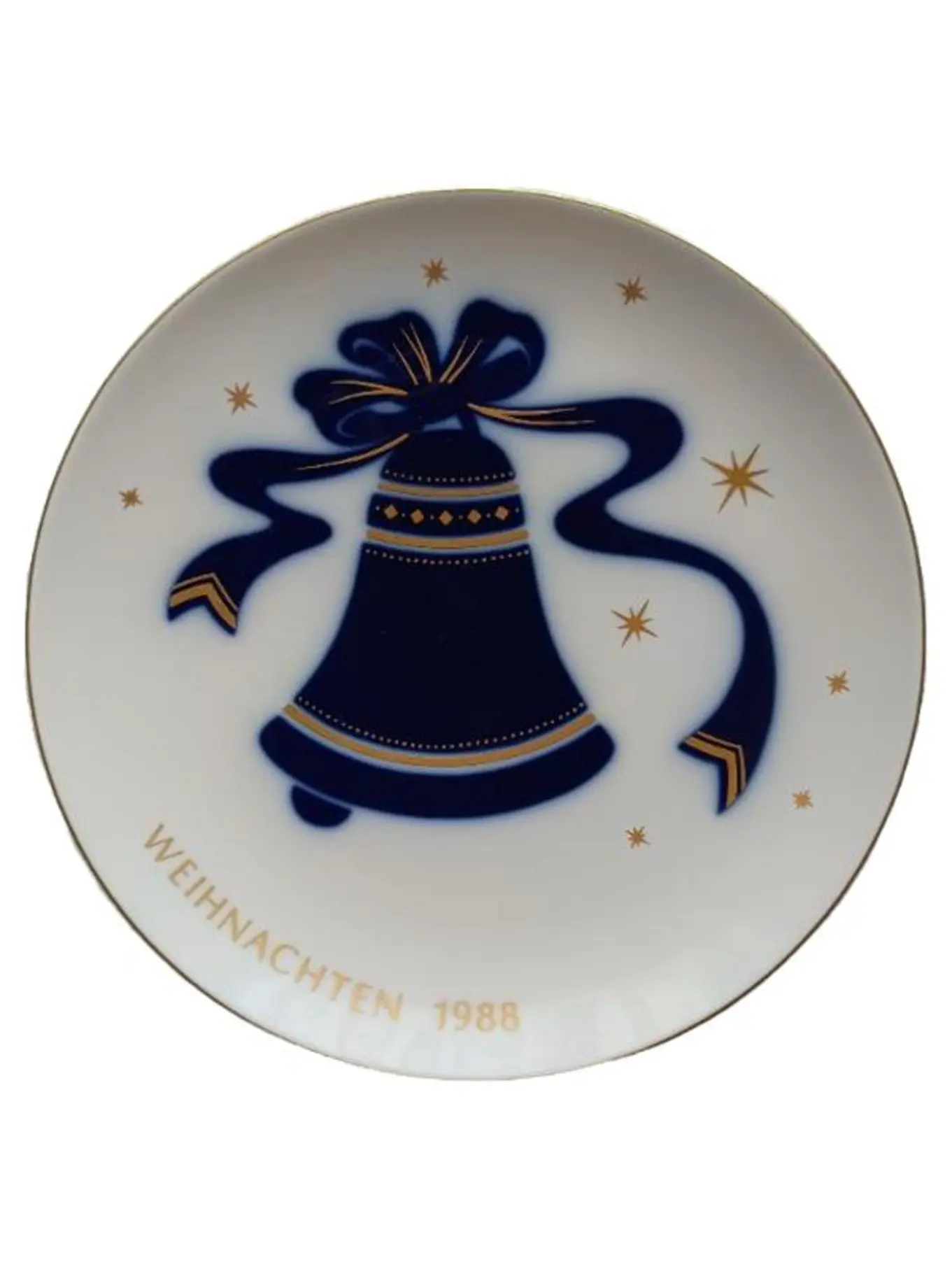 KPM BERLIN Weihnachtsteller 1988 Glocke Porzellan Blau 20cm Limitierte Auflage