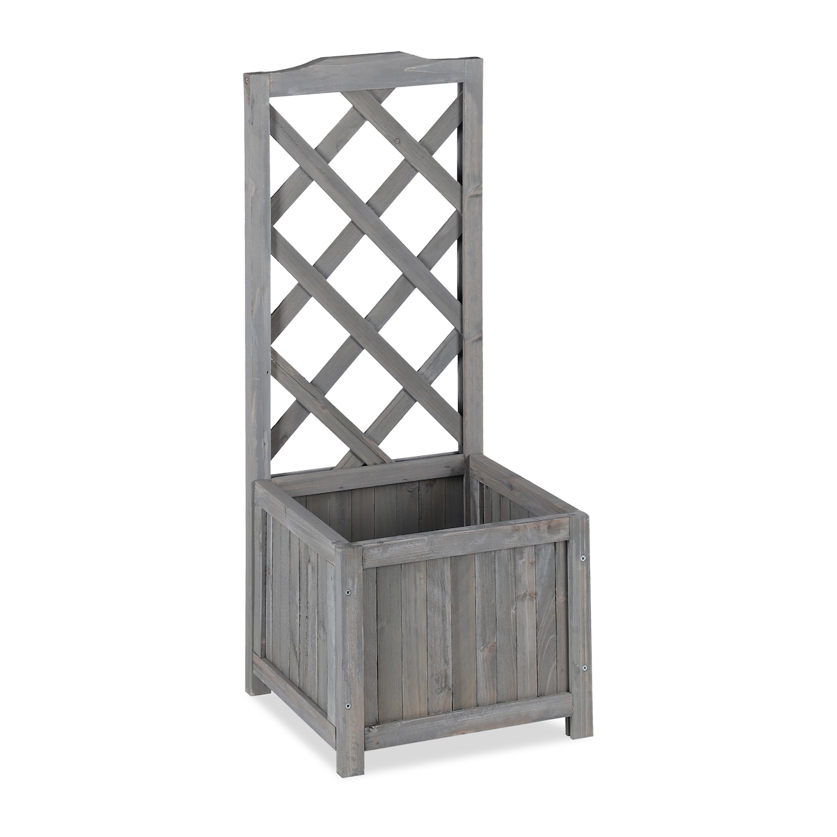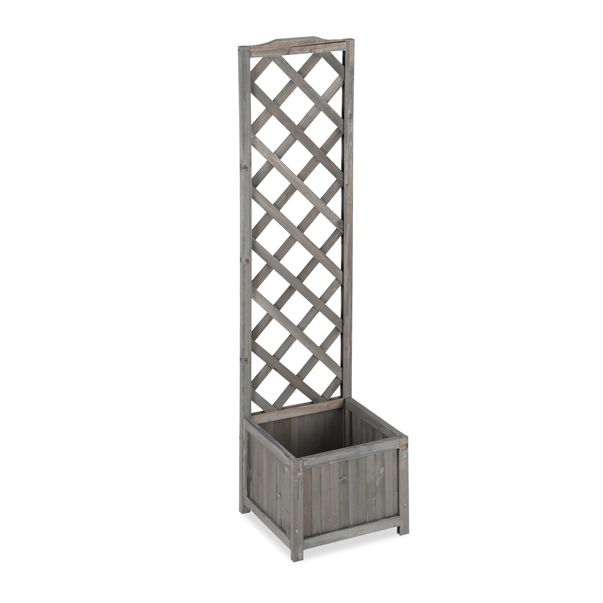 Relaxdays Rankkasten mit Rankgitter, wetterfest, Holz, f. Balkon, Garten, Rosen, Wein, 20 L Kübel, 90 cm Rankhilfe, grau