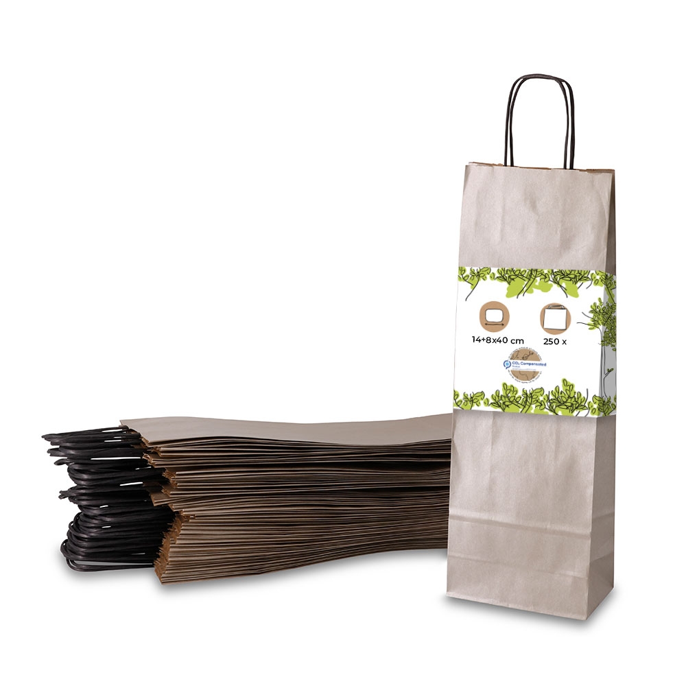 BIOZOYG 250 Stück Geschenktaschen braun Flaschentaschen für Weinflaschen Weinbeutel aus Kraftpapier umweltfreundliche Weintüten aus Kraftpapier
