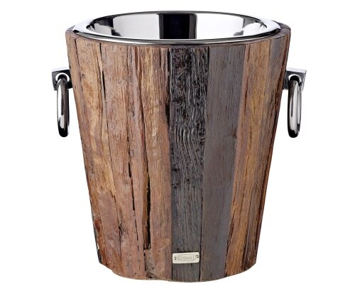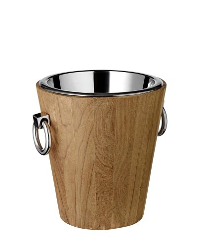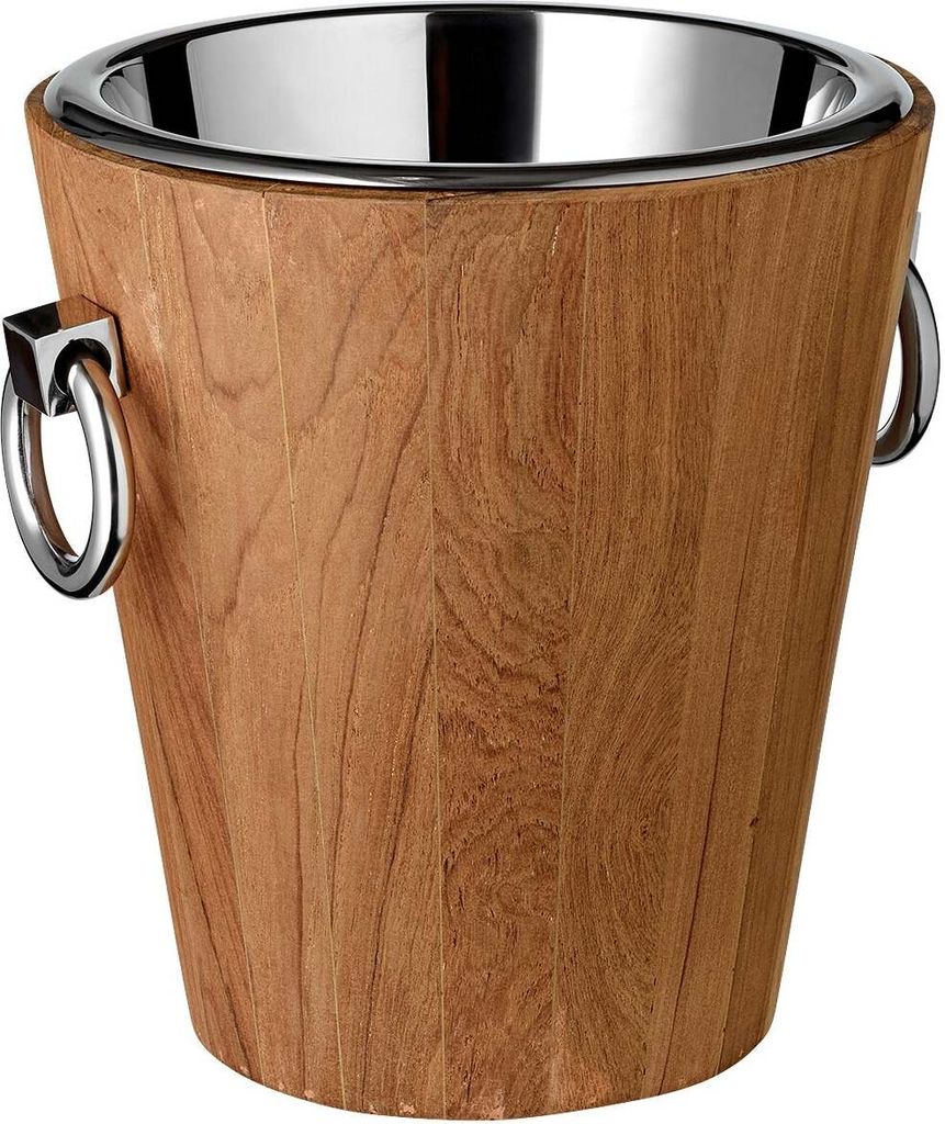 EDZARD Weinkühler Flaschenkühler Providence, Teakholz, Edelstahl glänzend vernickelt, H 28 cm, Gewicht 4 kg