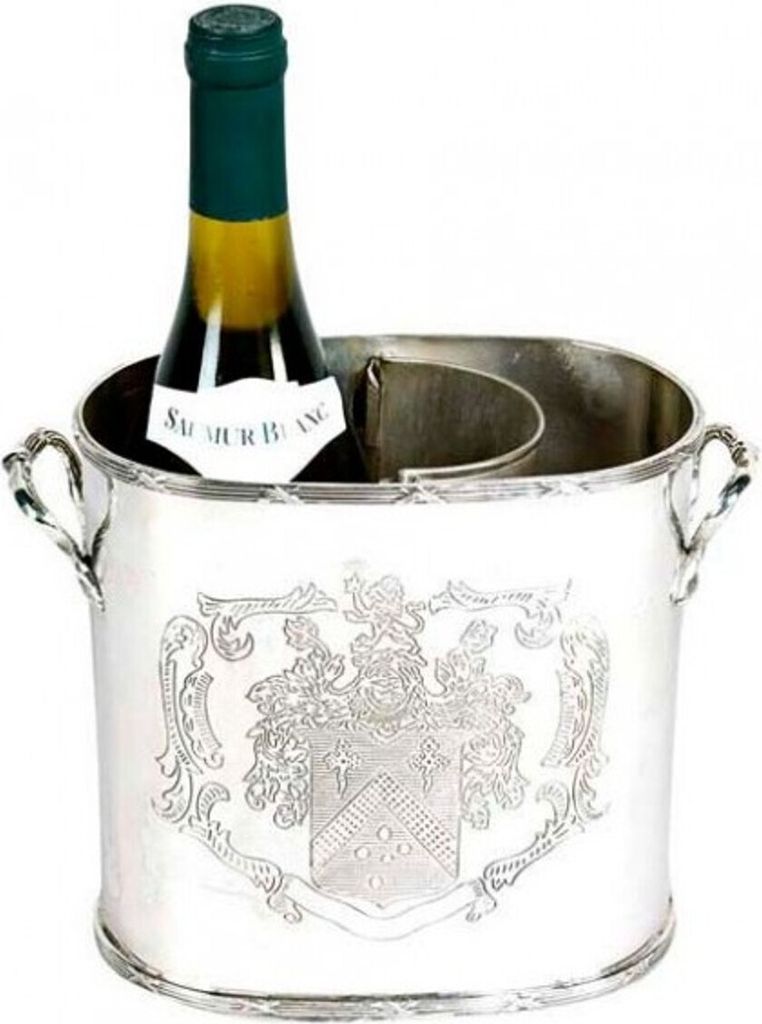 Massiver Luxus Tisch Weinflaschen Halter Weinkühler Coat of Arms für 1 Weinflasche Nickel Finish - Casa Padrino Luxury Collection - vernickelt