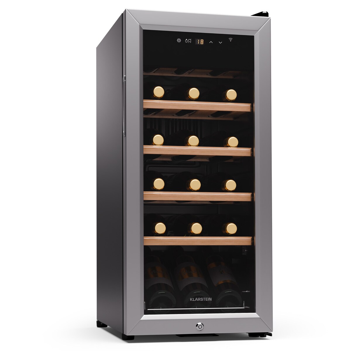 Klarstein Shiraz Premium Smart 18 Weinkühlschrank für 18 Flaschen Silber-Metallic