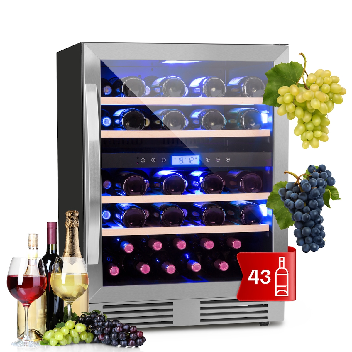 Klarstein Illuminosa Unterbau Weinkühlschrank - 46 Flaschen, 2 Zonen, 5-22°C, LED, Touch, UV-Schutz, leise, Einbau, Weinkühlschrank zum Einbauen