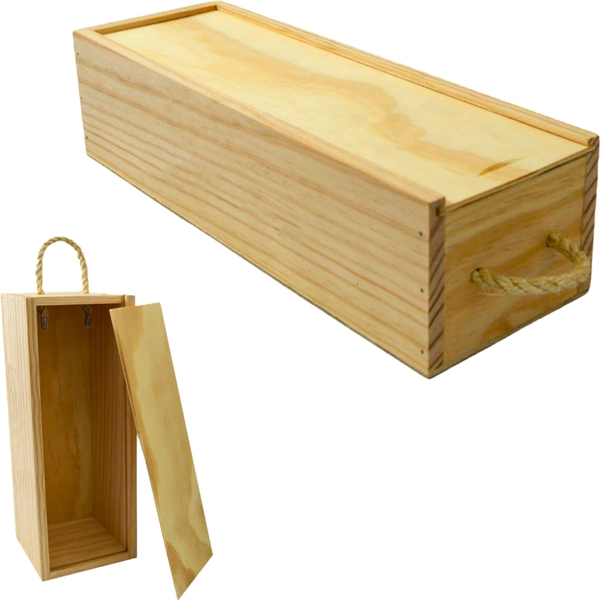 Creative Deco Weinkiste Holzkiste aus Natürliches Kiefern-Holz | Wein-Box für 1 Flasche mit Schiebedeckel und Tragekordel | 35,5 x 10,5 x 10,5 cm