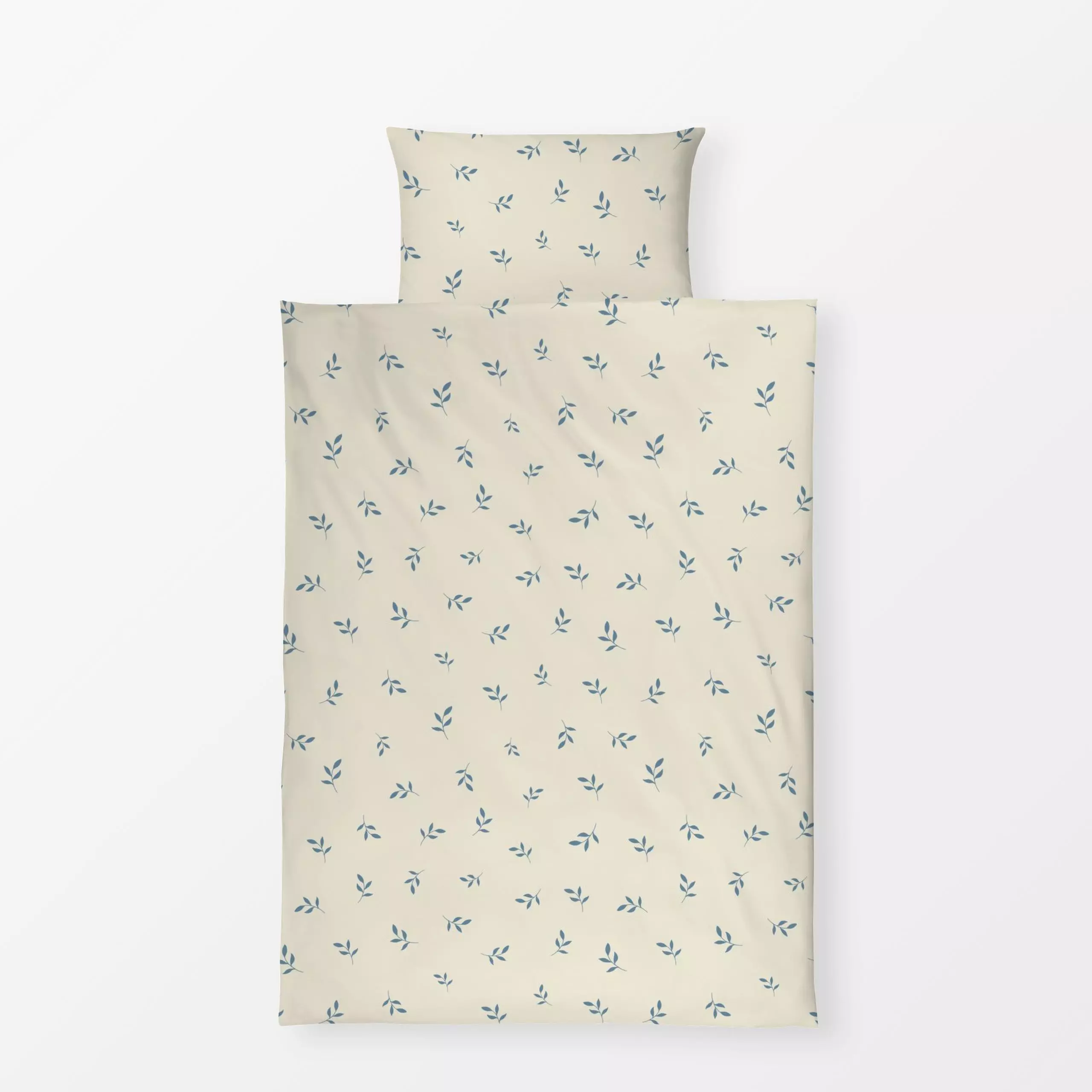 Bettwäsche Blätter Ditsy Weiss Blau - Pflanzen & Botanik - von „DEINKI"; Blatt, Blätter, vintage, landhaus, ditsy, romantisch