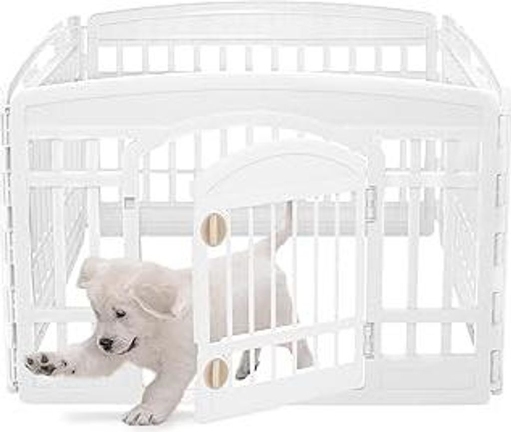 Iris Ohyama Welpenauslauf mit 4 Paneelen und abschließbarer Tür, H60cm, Weiß, Katzengehege, Hundebox, Für Outdoor, Indoor, Welpenlaufstall, Hun...