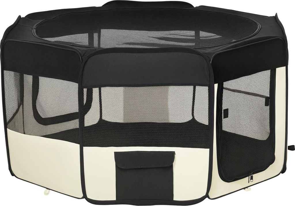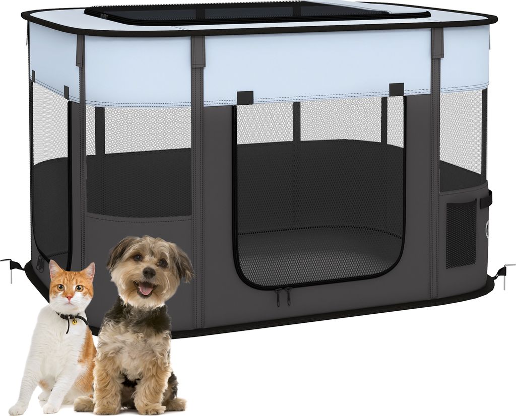 PawHut Welpenauslauf, Welpenlaufstall mit Türen, Fenster, faltbar Laufgitter, Atmungsaktiv Netz, für kleine Hunde unter 10 kg und Kleintiere, Ind...