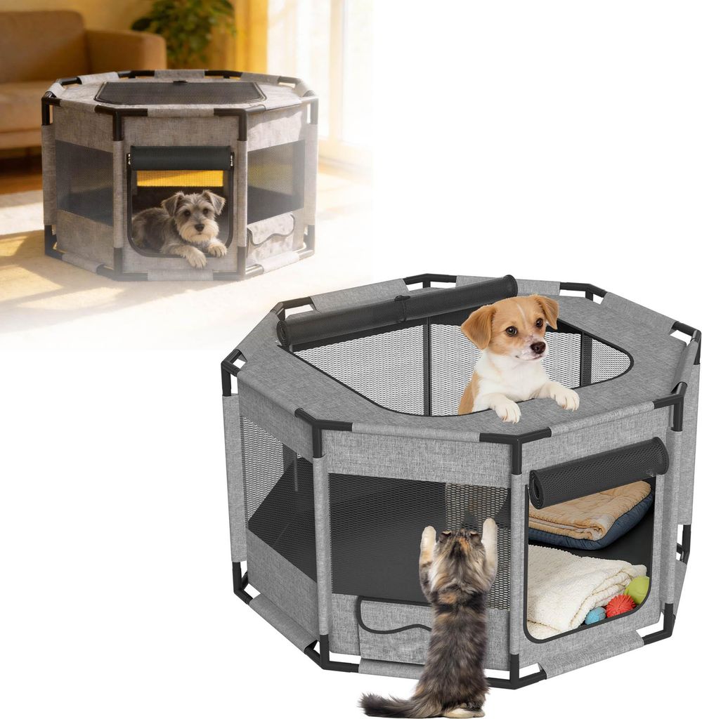 FIVMEN Welpenauslauf Freilaufgehege,Welpengehege aus Oxford-Gewebe,atmungsaktives Netz mit Reißverschluss & Seitentasche,Laufstall Laufgitter Indo...