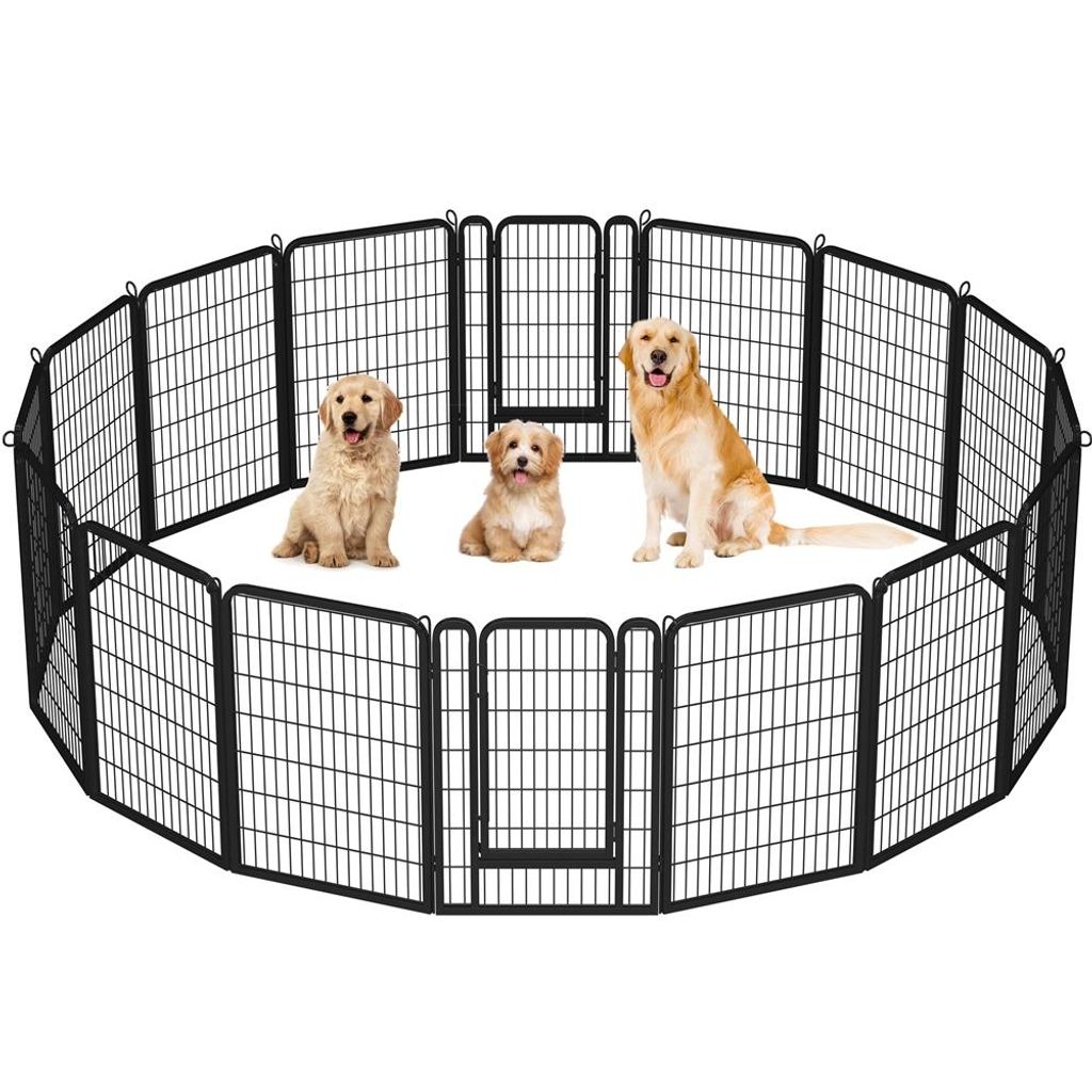 Yaheetech 16-teilig Welpenlaufstall 100 cm H, Welpenauslauf mit Tür, Faltbares Welpenfreigehege