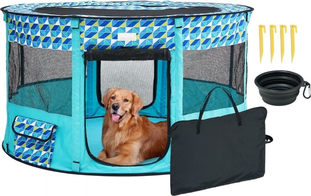 VEVOR Welpenlaufstall Faltbar 914 x 914x 584 mm Welpenauslauf Tierlaufstall 13 x 5 cm Klappschüssel Hundelaufstall 600D Oxford-Gewebe Hundelaufsta...